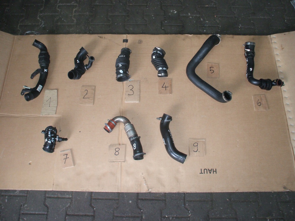 turbine pipe no.1 in the picture with the number DS73-6C646DK or DS73-6C646FK or DS73-6C646FJ for Ford Galaxy MK4 and S-Max MK2 2.0TDCI after 2015 . At another auction, hose No. 2 with no. DS73-9F805H - 50, hose no. 3 with no. DS73-9R504-HC or DS73-9C662-KG - 50, hose no. 4 with no. J1G3-9R504-BA - 90, hose no. 5 with no. DS73-6F072-DG - 200, pipe no. 6 with no. JG91-6C646-AC - 200, hose no. 7 with no. HG9Q-9G944-AE - 250, pipe with hoses No. 8 - 100, hose No. 9 - 100
