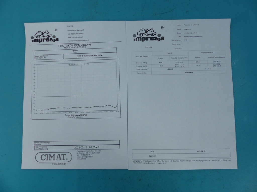 Make Model: Subaru Outback IV 09-14 Vehicle VIN: JF1BRDLZ4AG017039 Year of manufacture vehicle 2010 Vehicle description: 2.0 D boxer 150KM combo 5d manual gearbox climaronik European version Additional information: Regenerated, balanced on the CMT 48 VSR CIMAT device and checked on the TurboTest CIMAT Variable geometry set VF55 V41VADS0054B V41VAD-S0054B V41VADS0054G V41VAD-S00 54G RHV4 14411AA810 14411AA840 14411AA860 14411AA811