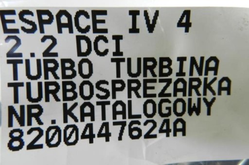 TURBOCHARGER TURBINE ESPACE 2.2 DCI 8200447624A