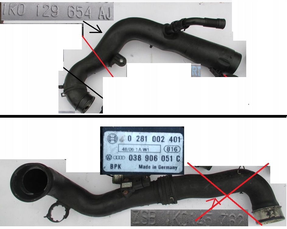 THE SUBJECT OF THE AUCTION IS FOR VW PASSAT B6 MODEL AFTER 2005 - PASSAT B6 2.0 TDI BKP 140KM INTERCOOLER AIR PIPE ATTENTION! THERE ARE ONLY 2 PIECES SHOWN IN THE PICTURE. PRICE PER PIECE, THE LOWER TUBE IS WITH A SENSOR. SENSOR NO.: 0281002401